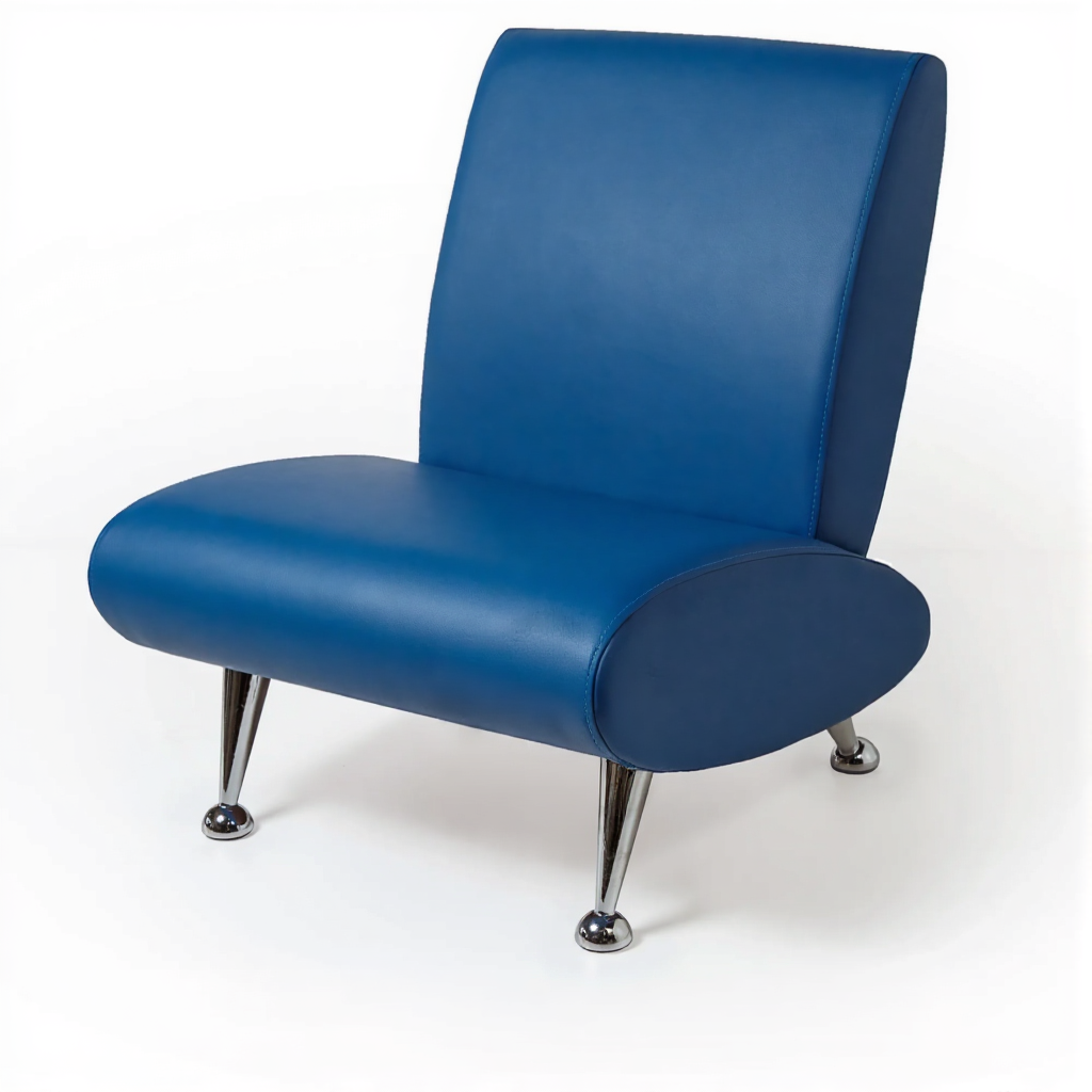 Опоры диван-кресла хромированные. Модель не снабжается раскладным механизмом, что делает ее компактной и удобной для небольших помещений.