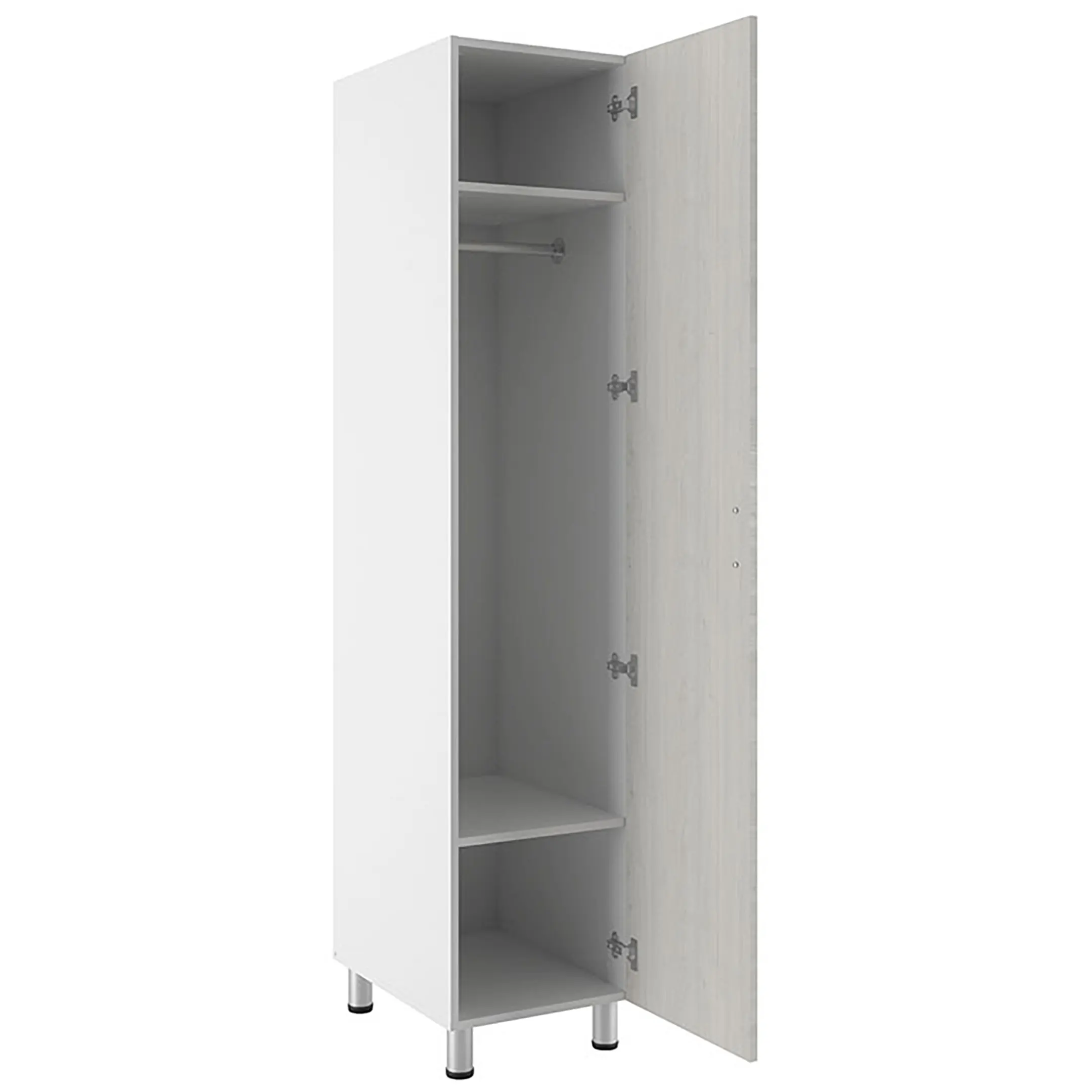 • комплектуется несъемными полками и хромированной перекладиной для вешалок;