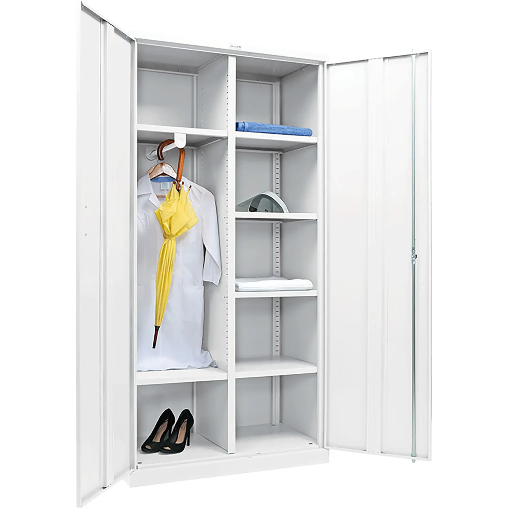 • Комплектация: 2 секции, вертикальная перегородка, 6 полок, перекладина для плечиков;