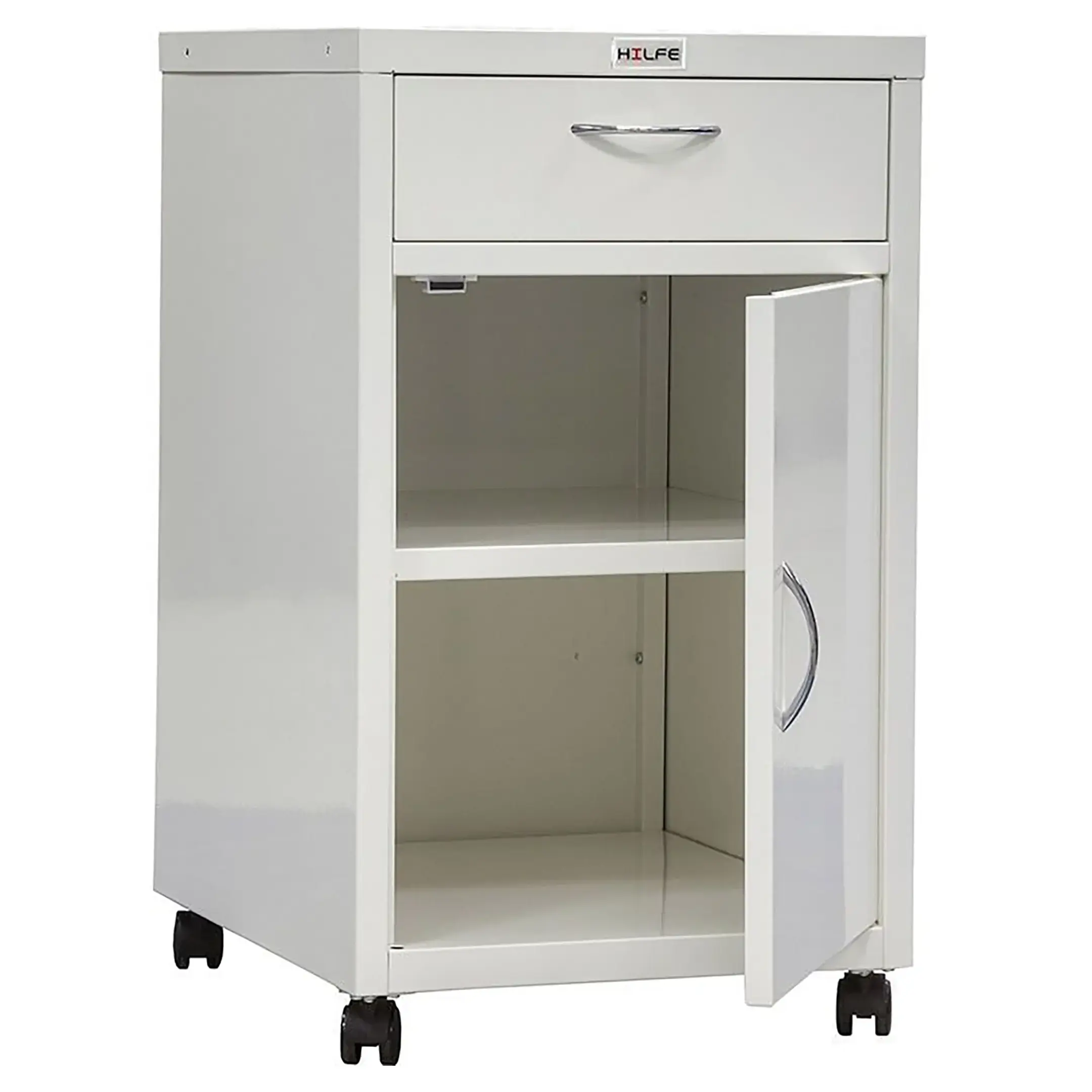 Опция: установка ключевого замка (2000 комбинаций), пластиковые опоры вместо колес, резиновые колеса. Окраска дверей, передних панелей ящиков или корпуса изделия полностью в другие цвета из палитры производителя - RAL 710-1, RAL 610-1 (при заказе от 70 штук).