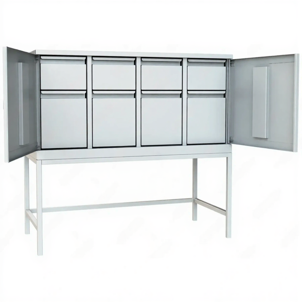 - Стабильность и прочность конструкции — ножки обеспечивают шкафу устойчивость даже при полной загрузке ящиков. Конструкция из качественной стали с порошковым покрытием гарантирует долговечность и износостойкость в условиях ежедневного использования.