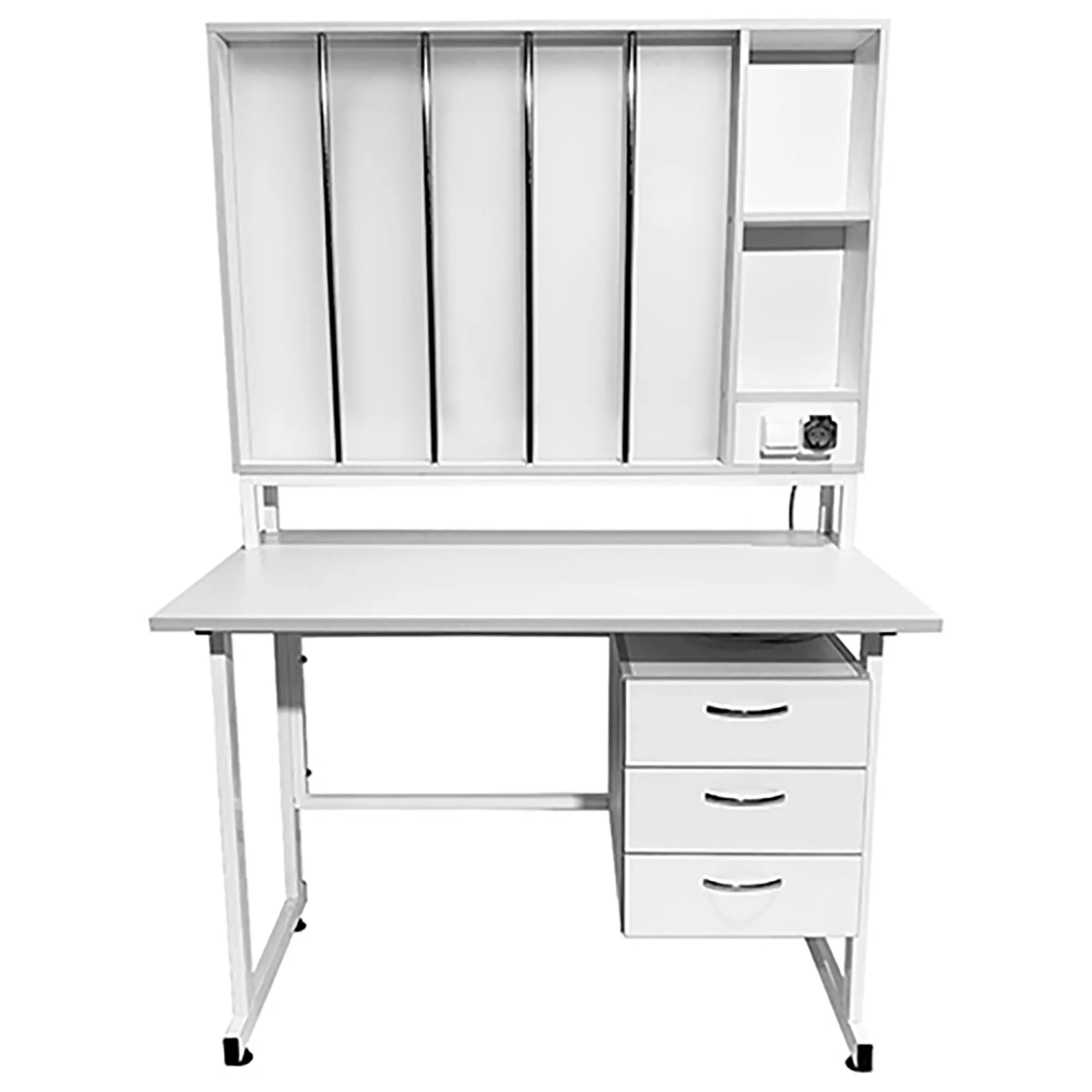 - Удобное хранение — боковая тумба с 3 выдвижными ящиками для хранения материалов и инструментов.