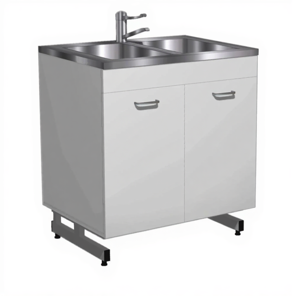 Стол-мойка СТм-202 «Премиум» 800 (корпус ЛДСП серый, каркас серый) — это необходимая составляющая для оснащения рабочей зоны, обеспечивающая удобство и безопасность труда специалистов-исследователей в кабинетах лабораторий. Модель предназначена для мытья и сушки лабораторной посуды. Оснащена двухчашевой накладной мойкой из нержавеющей стали, локтевым смесителем и двумя дверками в тумбе. Каркас выполнен из стального профиля, корпус из ЛДСтП 16 мм.