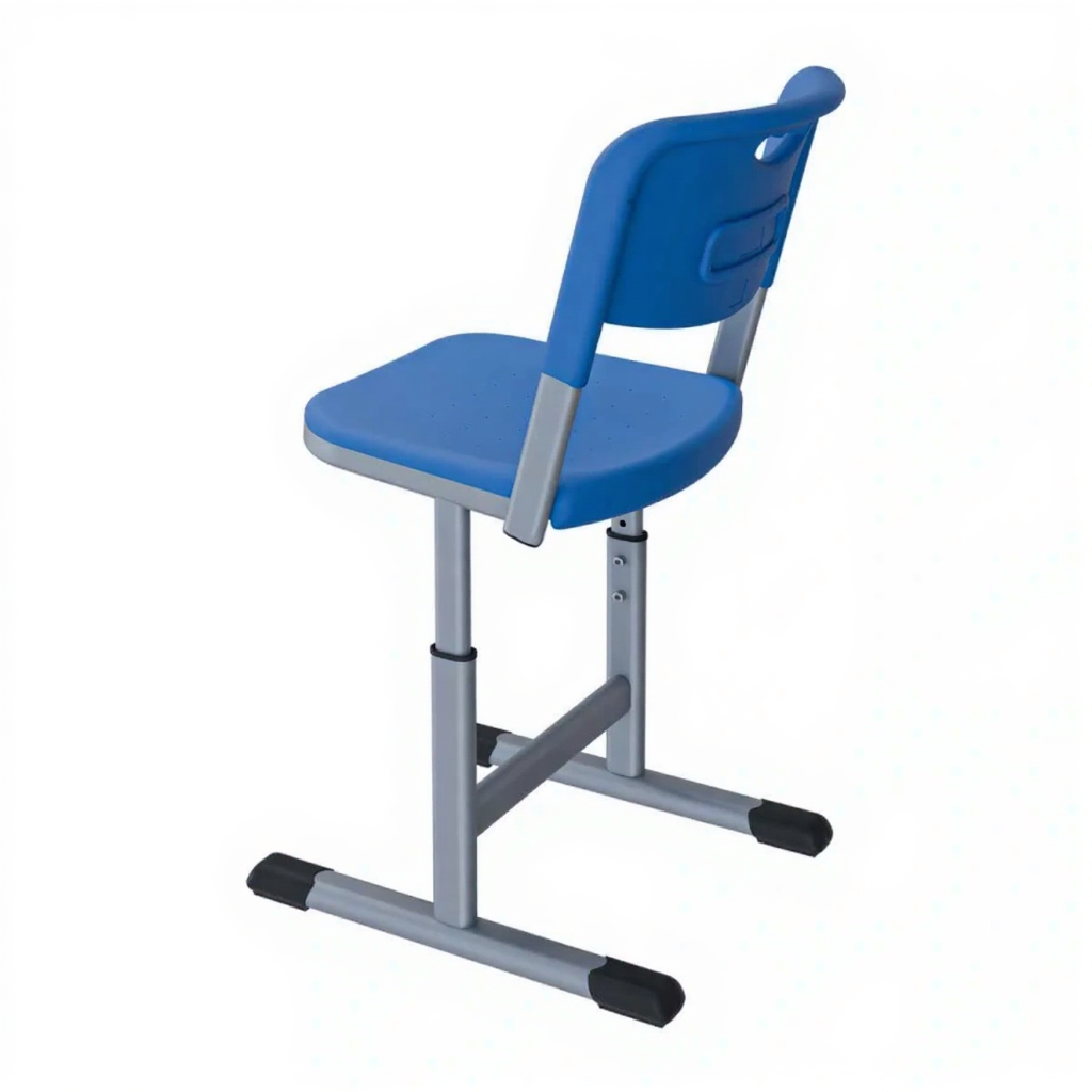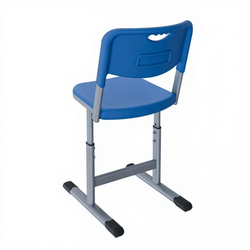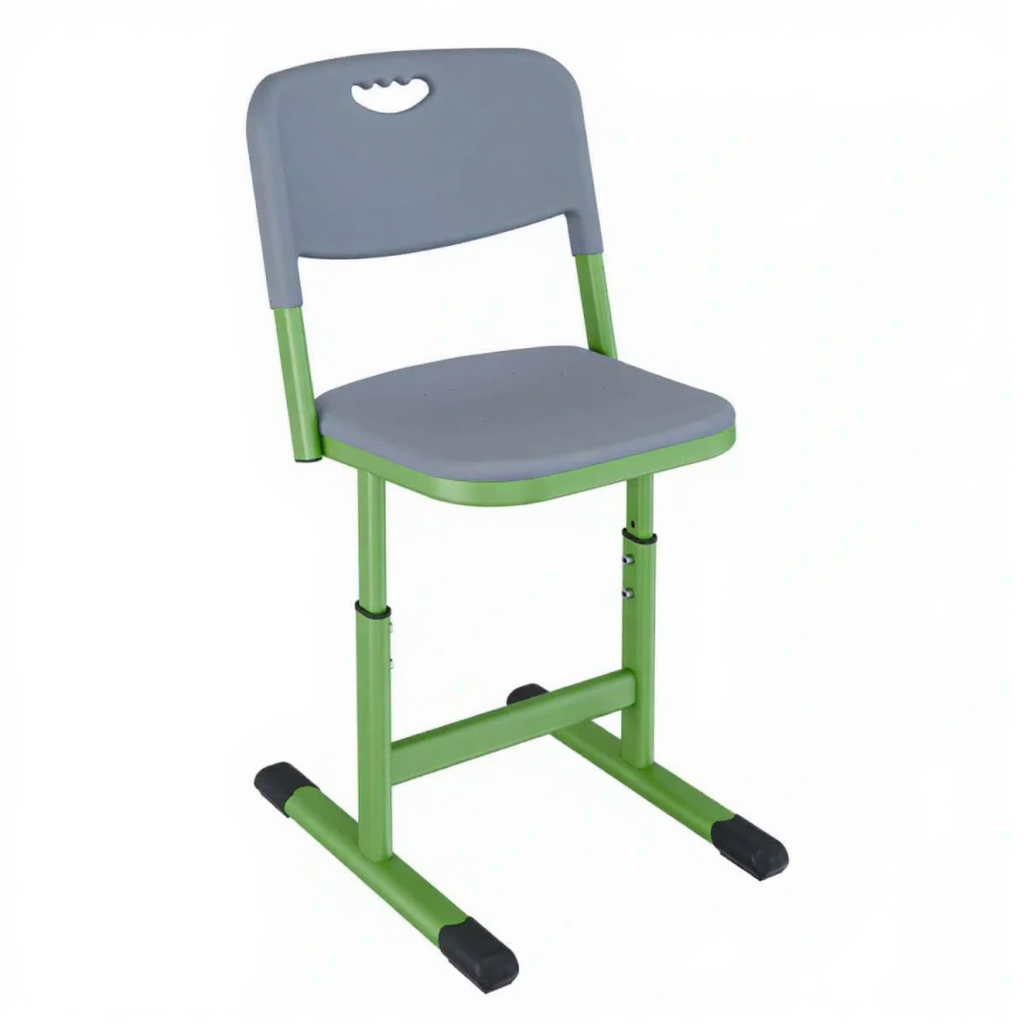 • Регулируемая высота — позволяет адаптировать стул под рост ученика и высоту стола, обеспечивая правильную посадку.