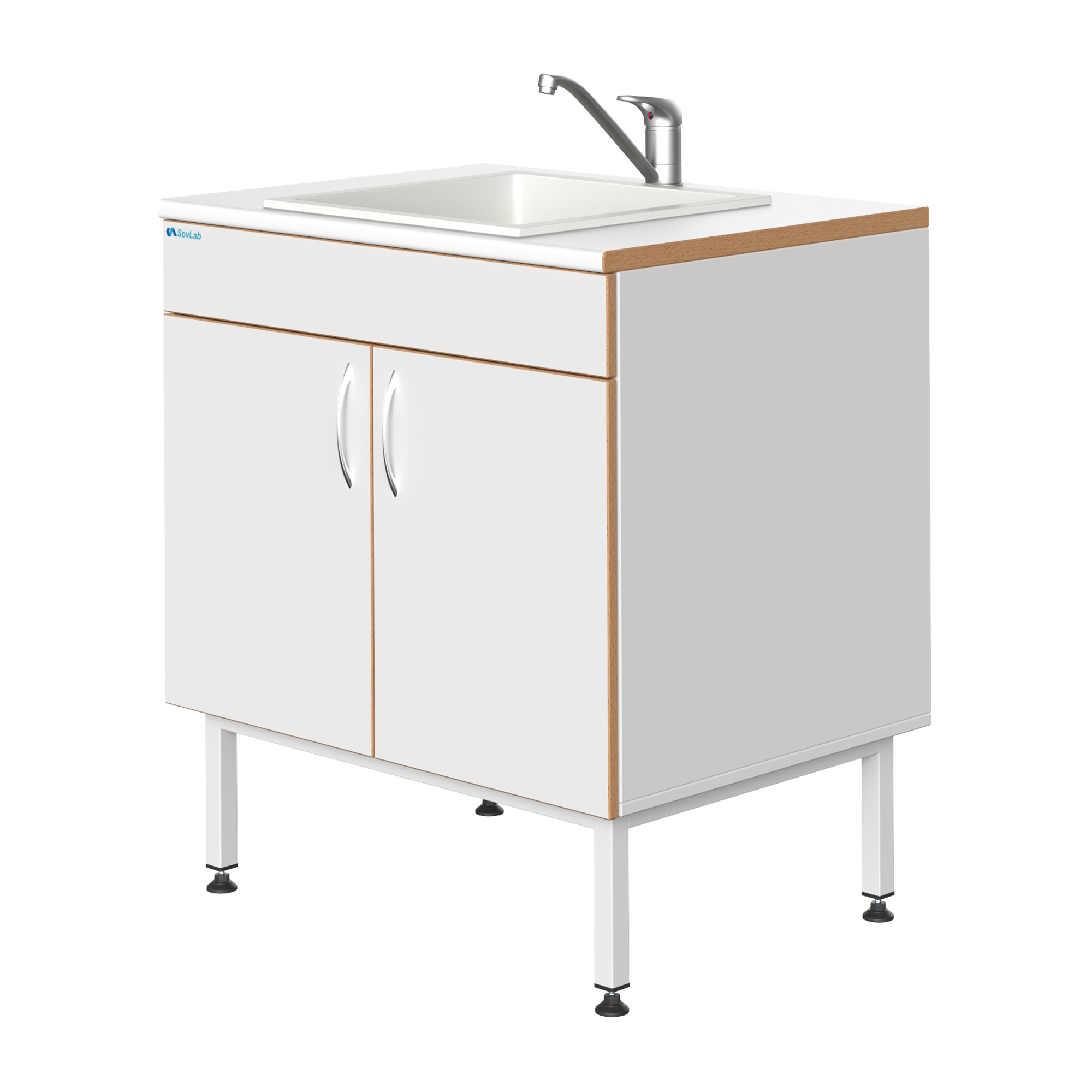- Химически стойкая рабочая поверхность — столешница из ламината с пластиковым покрытием, устойчива к агрессивным средам.