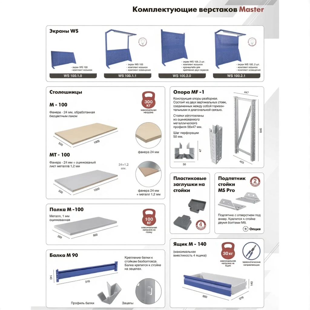 Верстак MASTER M100.MF1.MF1.103 — это надежное и функциональное решение для организации рабочего места на производстве, в учебных заведениях, мастерских и гаражах. Компактные габариты столешницы позволяют эффективно использовать ограниченное пространство.