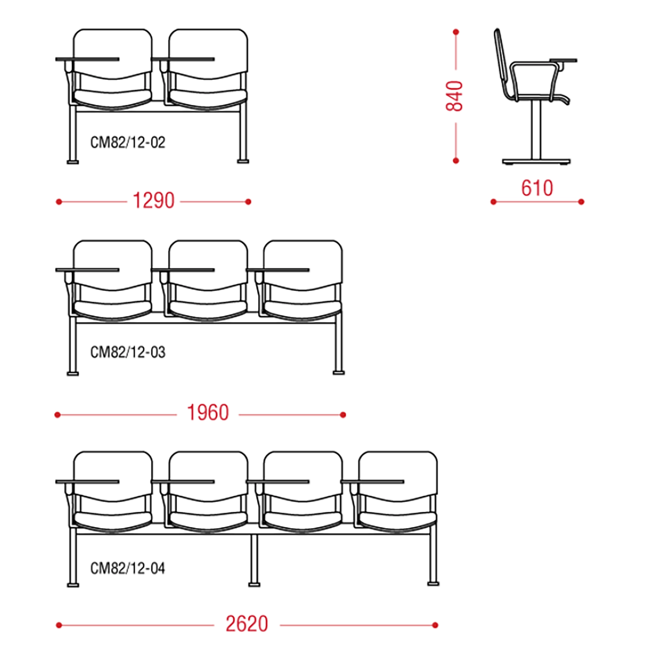 Эта многоместная секция подходит для конференции или семинара. Откидные столики-пюпитры дают возможность делать записи, а мягкая обивка стула позволяет не отвлекаться на дискомфорт во время длительных лекций и докладов. Классический дизайн, надежность, проверенная временем, доступная цена - слагаемые популярности этой многоместной секции.