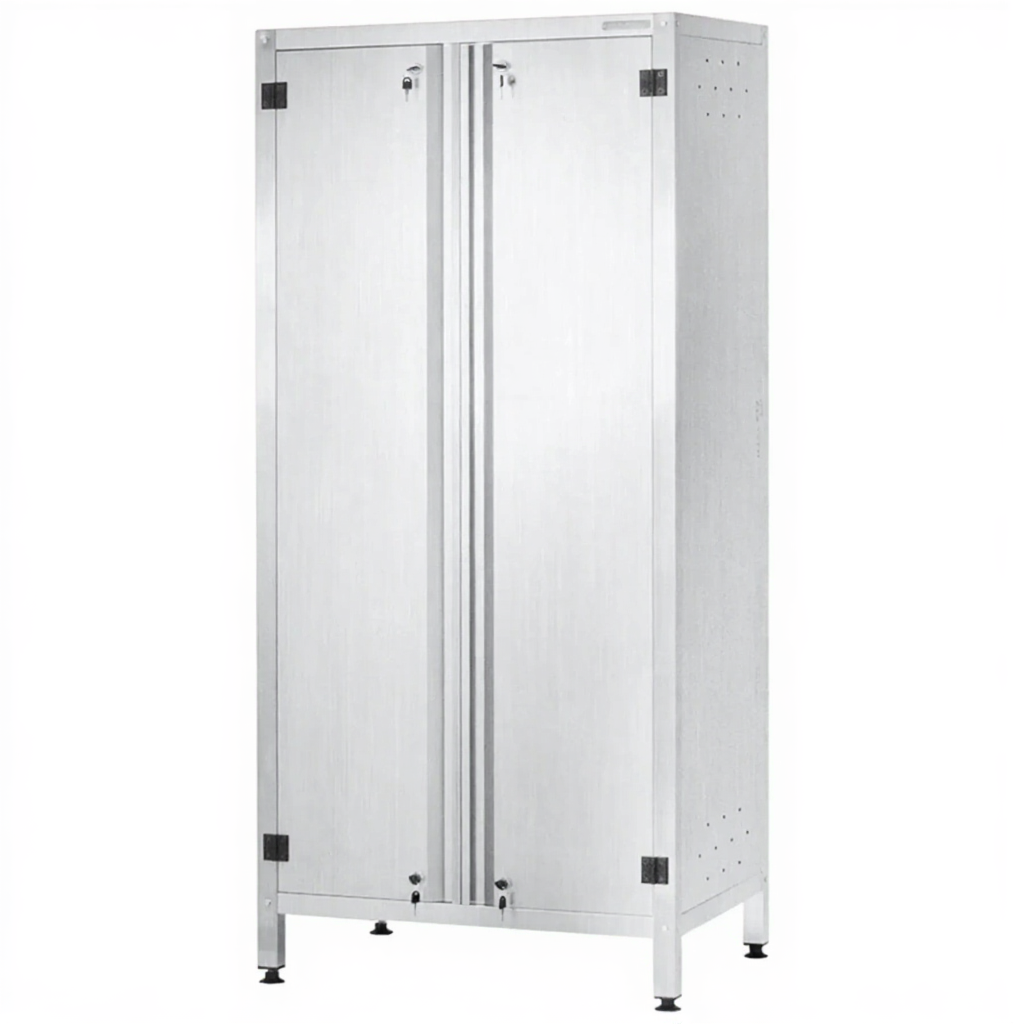 - Промышленная прочность и долговечность — конструкция из нержавеющей стали выдерживает значительные весовые нагрузки, устойчива к ударам, высокой температуре и влажности. Шкаф рассчитан на многолетнюю интенсивную эксплуатацию в условиях пищевых и медицинских производств.