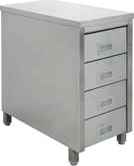 Корпус и четыре выдвижных ящика из нержавеющей стали марки AISI 430 толщиной 0,8мм.