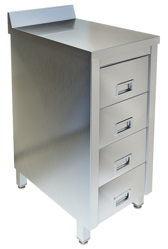 Корпус и четыре выдвижных ящика из нержавеющей стали марки AISI 430 толщиной 0,8мм.
