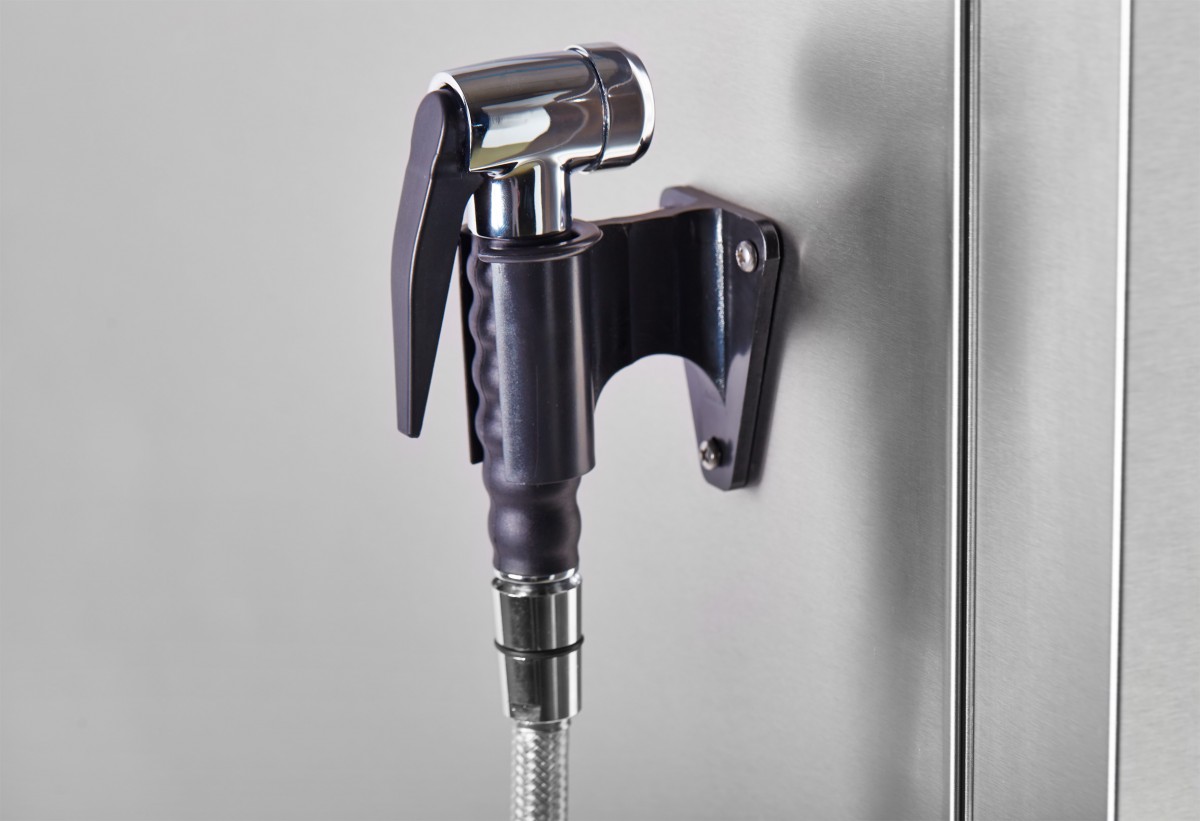 - двухходовый механизм открывания двери обеспечивает безопасность персонала от воздействия горячего пара