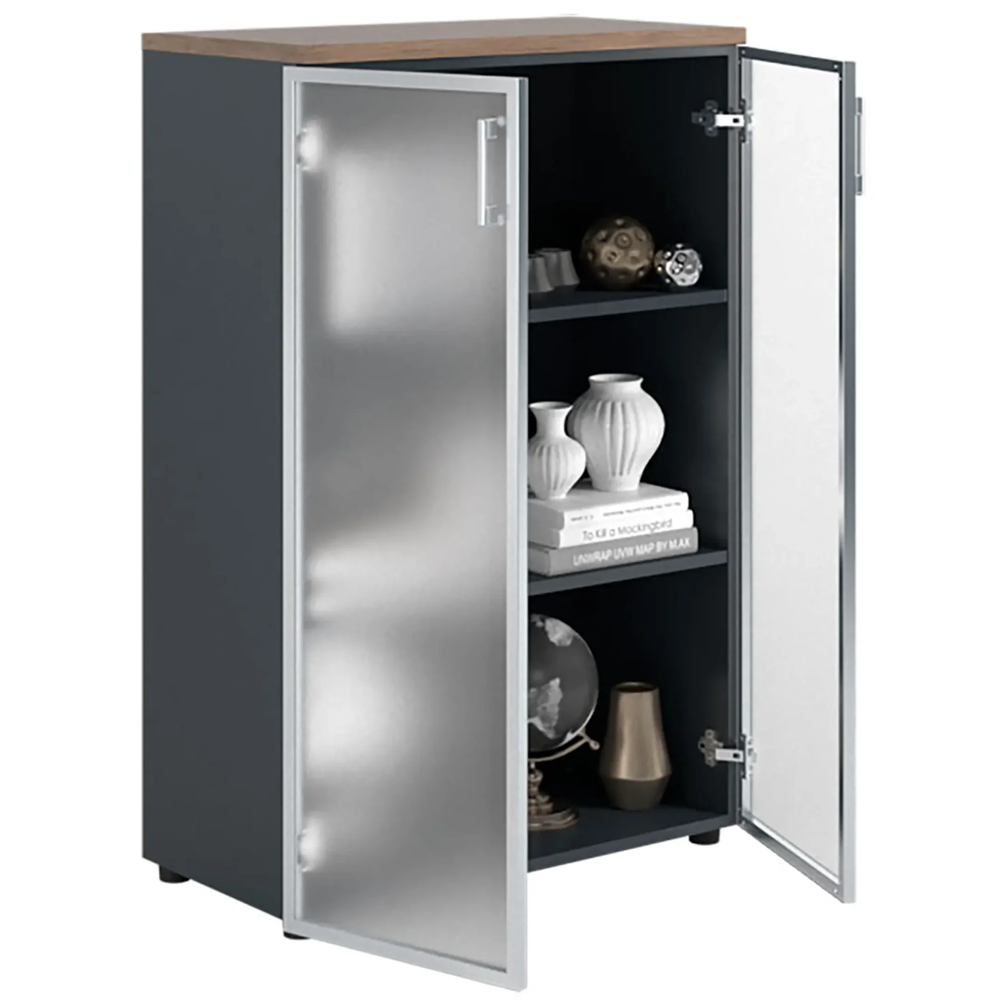 Шкаф NW 1280/2G со стеклом темный орех/антрацит предназначен для хранения.