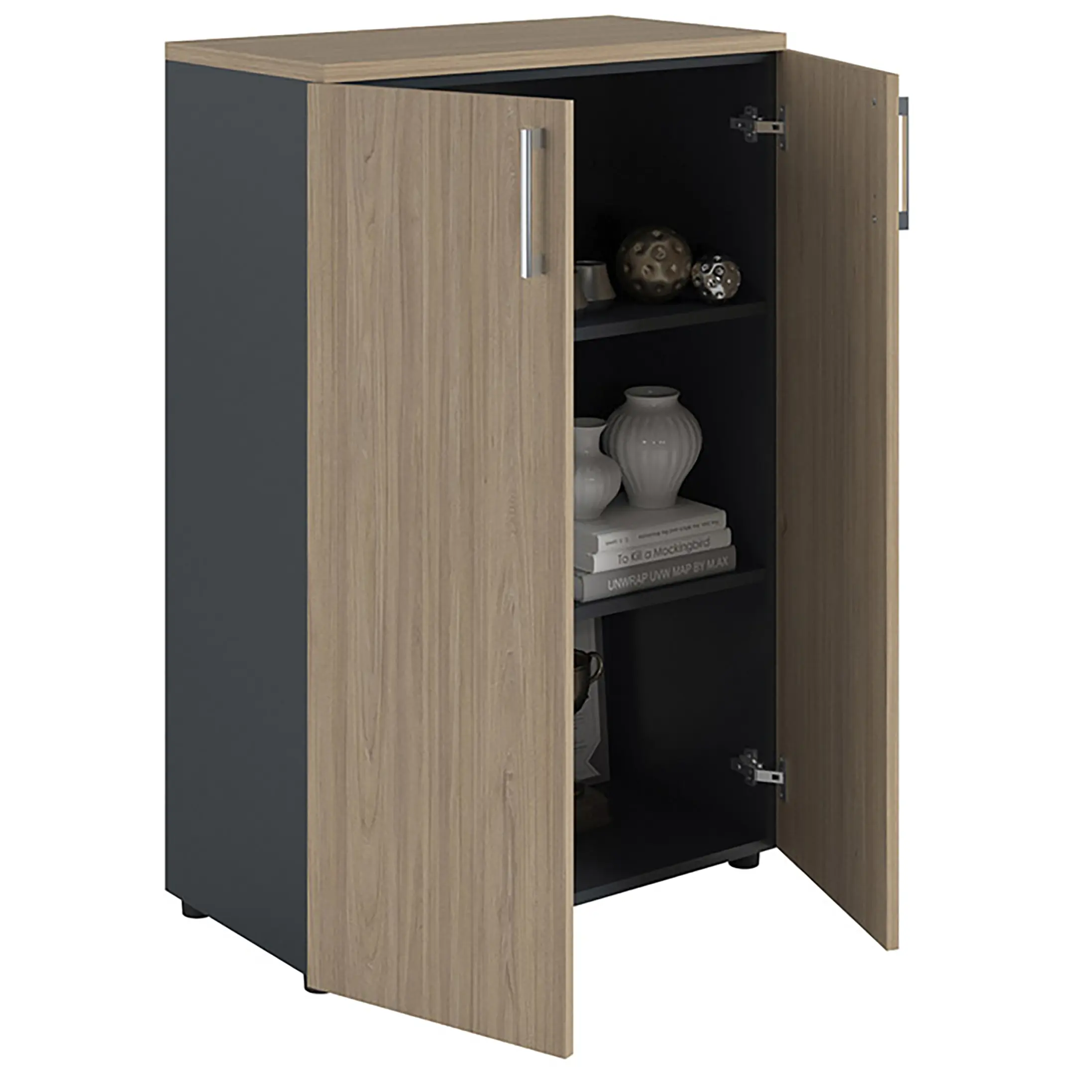 Шкаф NW 1280 закрытый вяз натуральный/антрацит предназначен для хранения.