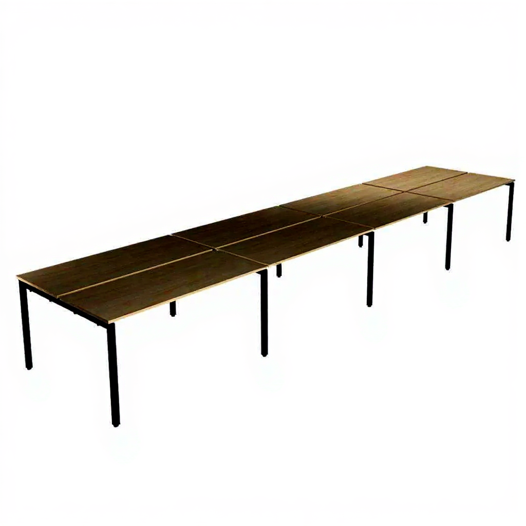 Рабочая станция «бенч» предназначена для оснащения офисных помещений и коворкингов, рассчитана на работу восьми человек, при этом рабочие места расположены напротив друг друга. Бенч-системы можно использовать с разными видами столешниц (ЛДСП, МДФ, массив дерева, пластик).