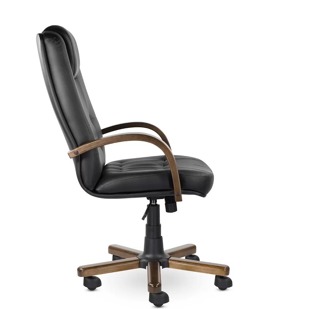 Кресло K‑41 Кендо В дерево — стильное и солидное офисное кресло руководителя с высокой спинкой, выразительным подголовником и декоративными деревянными элементами. Модель сочетает презентабельный дизайн, комфортную посадку и надёжную конструкцию, что делает её подходящим решением для кабинетов, переговорных и рабочих зон.