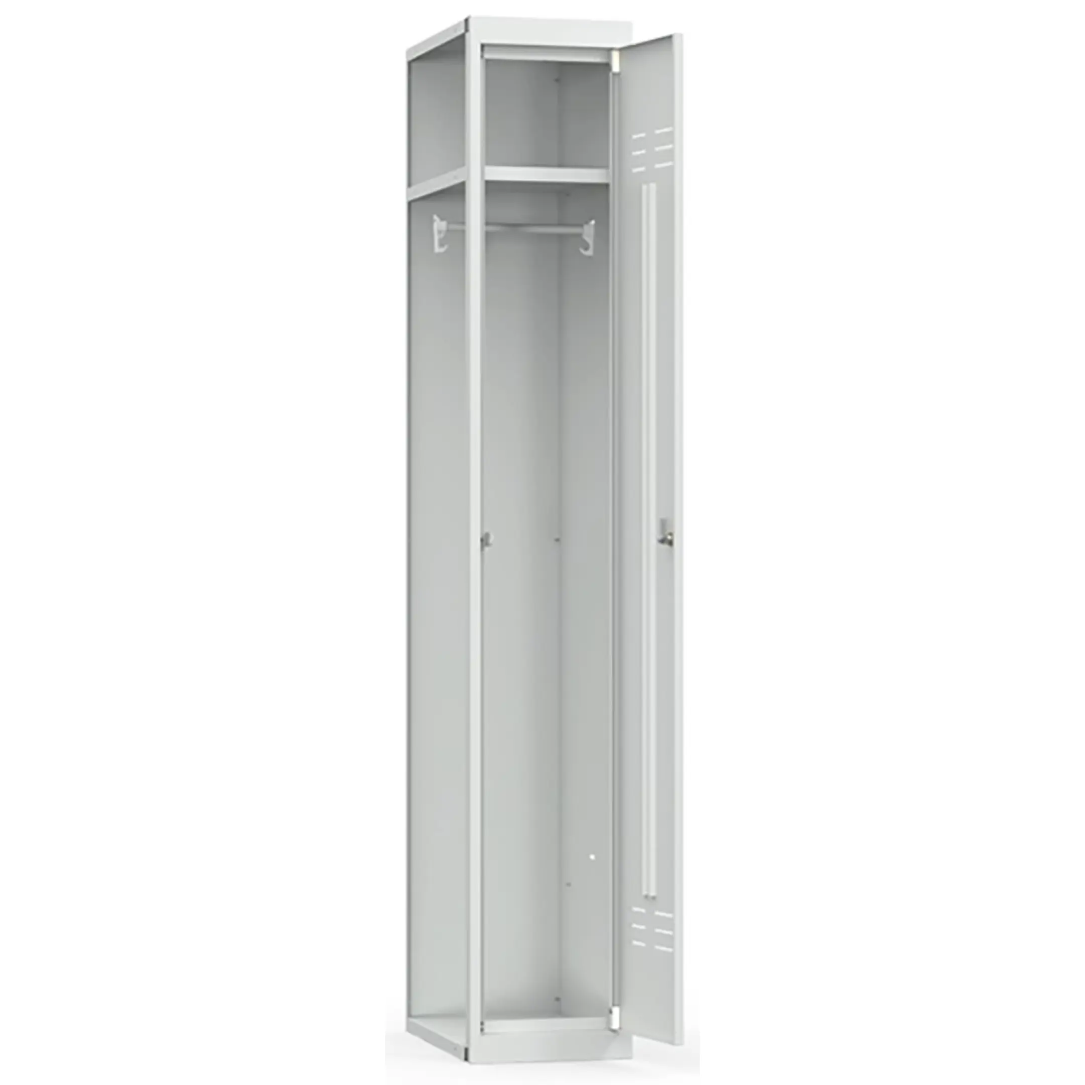 • комплектуется полкой для головных уборов, металлической перекладиной для вешалок, проушиной для навесных замков и двумя крючками для одежды;
