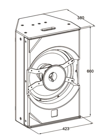 Пассивная полнодиапазонная двухполосная акустическая система; НЧ: 1x15", звуковая катушка 75 мм, ферритовый магнит; ВЧ: 1x3“, звуковая катушка 75 мм, неодимовый магнит; Мощность (AES): 500 Вт; Частотный диапазон: 55 Гц - 20 кГц (-10 дБ); Чувствительность: 96 дБ; Макс. SPL: 129 дБ пик; Угол раскрытия (H x V): 80° x 80°, 8 Ом